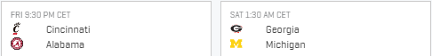 Auch hier ist der Wettfavorit (Georgia Q1.27) mein Favorit. Zwar mutet es komisch an, dass die Bulldogen gegen die Wolverines (Q3.4) gewinnen können. Aber es geht ja um die Spieler.