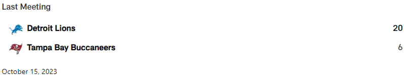 Detroit hat am 15.10.2023 in Tampa 20:6 gewonnen. Baker war schlecht – die Offensive produzierte nur 2 Fieldgoals.