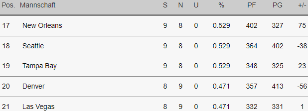 Es irritiert, dass die Saints vor den Bucs sind (Punktedifferenz?) – aber Liga-Rang 19 und trotzdem steht Tampa im Viertelfinale.