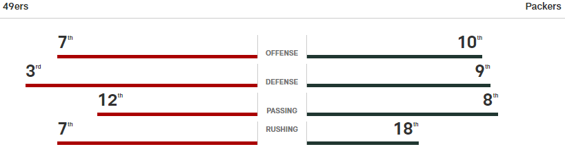 Für Green Bay gilt natürlich das Gleiche, wie oben bei TEN. Nur, dass die nicht einen so guten Spieler wieder zurückhaben, wie King Henry. Aus meiner Sicht (beim Spiel BUF vs NE war es -17°) ist es ein Nachteil für ein Team aus der Wärme (oder Halle) in der Kälte zu spielen. Hinzukommt, dass SF jetzt 2 vielleicht sogar 3 Spiele hatte, in welchen Verlieren verboten war und so könnte es sein, dass wenn der Widerstand zu gross wird das letzte Quäntchen in der Kälte fehlen wird.