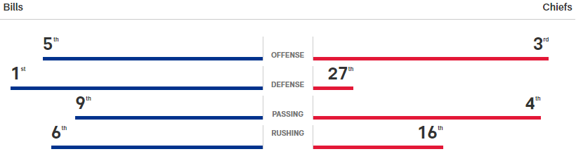 Der Unterschied zwischen den Defensiven sieht krass aus. Doch haben die Chiefs in den letzten Spielen viel Boden gut gemacht und gegen die Steelers gezeigt, dass auch die D superbowl-würdig ist. Wenn wir schon beim Thema superbowl-würdig sind: Points with Patrick: 32.2 Punkte im Schnitt in den Playoffs. Kein Quarterback mit mehr als mind 5 Starts hat einen höheren Schnitt. Auch Allen trägt zu einem Geschichtseintrag bei: erstes Playoffspiel, wo beide QB im vorangegangen Spiel 5 oder mehr TDs hatten.