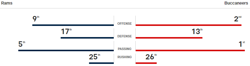 Die Bucs standen den Rams (in LA) bereits einmal gegenüber diese Saison: 25.09.2021 gewann LAR 34:24. Brady hat den Rekord mit 9 Siegen in Serie in der Divisional Round. Auf der anderen Seite hat Stafford sein 1. Playoffspiel gewonnen. Stafford hat gute Werte (5 INT mehr als Brady; 500 Yards weniger) und ist auf Rang 2, was die TDs angeht. In den letzten 30 Jahren gab es 7 Mal das Matchup zwischen dem 1. und 2. und 5 Mal hat die Nummer 1 gewonnen.