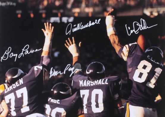 In der Defensive prägten die „Purple People Eaters“ eine Ära – ein gefürchteter Pass Rush um Alan Page, Carl Eller, Jim Marshall und Gary Larsen. Besonders Jim Marshall, der als „Iron Man“ der Defense galt, absolvierte unglaubliche 270 Spiele in Folge über 19 Jahre hinweg. In der Saison 1998 stellte das Team unter Quarterback Randall Cunningham, Rookie-Wide-Receiver Randy Moss und Kicker Gary Anderson einen Punkterekord mit 556 erzielten Punkten auf. Das Team verlor nur ein einziges Spiel in der Regular Season – doch im NFC Championship Game gegen die Atlanta Falcons unterlief Anderson sein erster verschossener Field Goal der gesamten Saison, was das bittere Aus einleitete.