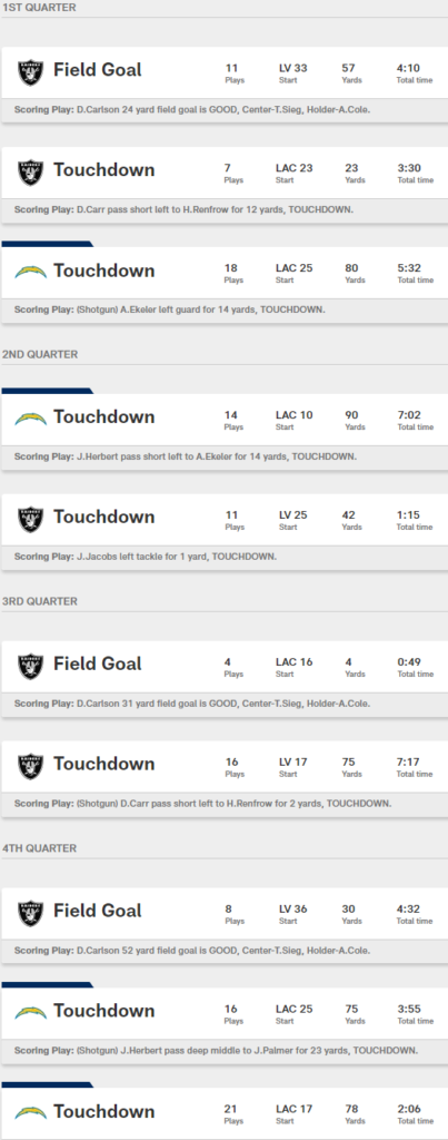 (Raiders auch – schade für die tapferen Chargers und QB Herbert)