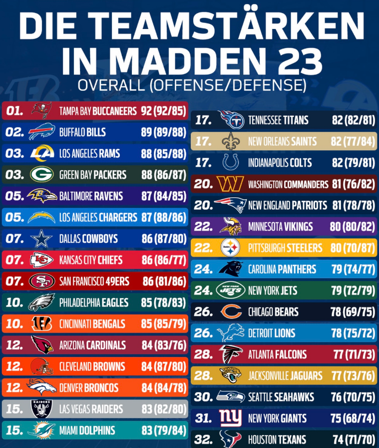 Teamstärken Madden 23