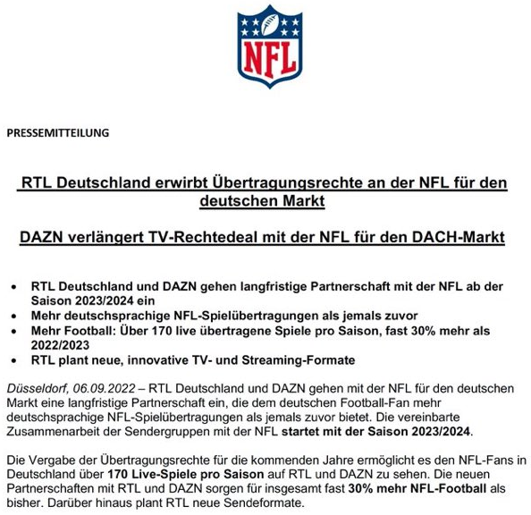 RTL hat vorgelegt und über das Team informiert. Der Draft wurde ja bereits mit bekannten Gesichtern (Stecker (2023: „da muss man weit zurückblicken als zuletzt 3 QBs in den Top4 gedraftet wurden“ -> 2021: #1 Larwence, #2 Wilson und #3 Lance); Vollmer und Kuhn) durchgeführt und war gut. Die Übertragung habe ich sogar als sehr „werbearm“ empfunden. Aber es war RTL Nitro und in der zweiten Hälfte der Nacht.