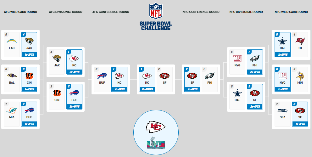 • Korrekte Super Bowl Vorhersage vor der Conference-Finalrunde;
