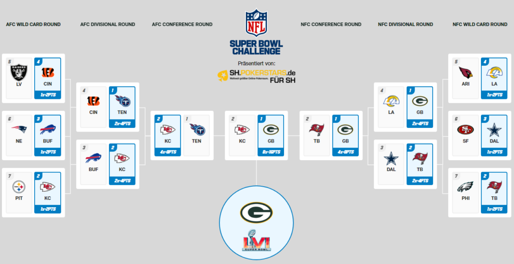 • Korrekte Super Bowl Vorhersage vor der Conference-Finalrunde;