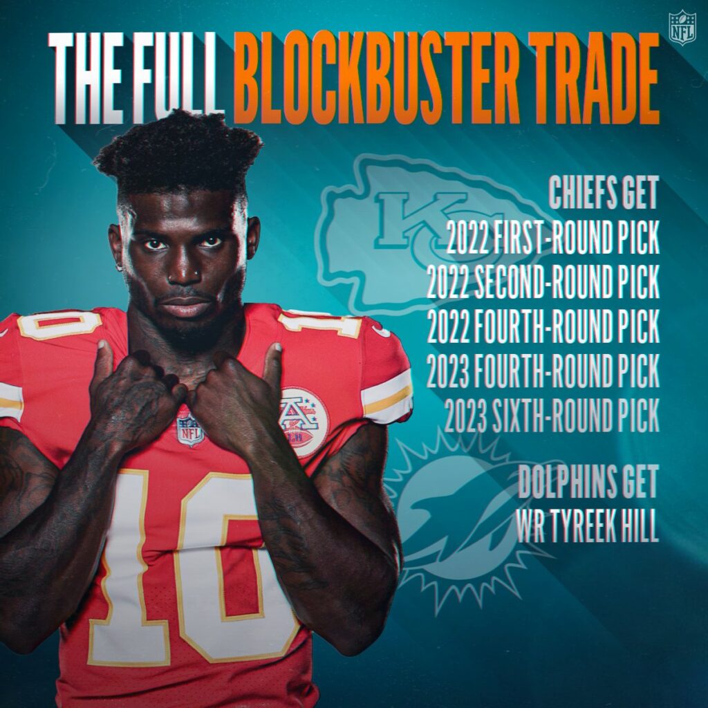 Ach so. Nicht lange hat die Angst/Freude vorgeherrscht, wie die Chiefs Offensive diese Saison aussehen könnte. Gestern Mittwoch wurde bekannt, dass WR Hill (28 Jahre) zu den Dolphins wechselt. Seine ganze bisherige Karriere verbrachte er bei den Chiefs. 2016 in der 5. Runde (Nr 165) gedraftet, hat er 91 Spiele gemacht und mit 479 Ballfängen 6’630 Yards 56 TD erzielt. 93 Mal hat er den Ball geworfen (719 Yards) und daraus wurden 6 TD.