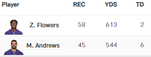 47 Sacks in 12 Spielen ist eindrücklich (Rams haben 27). Lamar hat aus meiner Sicht keine guten Receivers: