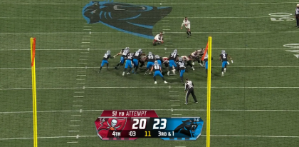 Nur 30 Sekunden war nach dem 23:20 übrig. Es kommt zur Verlängerung die Bucs erhalten zuerst den Ball. Verpassen aber ein 55 Yard Fieldgoal.