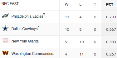 Haben die Bucs als einziges NFC-Team im Dezember kein Spiel verloren, so haben die Commanders kein einziges gewonnen. Nur 1 Spiel haben PHI und CAR gewonnen.
