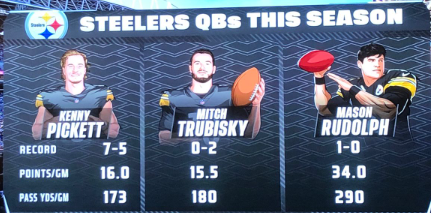 Das war in der Pause bei PIT at SEA. Und so sah es vor dem Spiel auf der Quarterback-Position aus:
