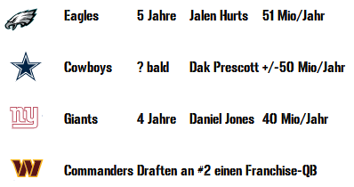 Apropo DAL: es findet ein Battle um den NFC East Divisionstitel statt und ARI hat sich fair verhalten und gegen beide gewonnen.