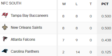Die Bucs gewinnen den NFC South Divisionstitel mit einem Sieg oder einem Unentschieden wenn die Saints nicht gewinnen.