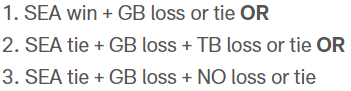 Da aber GB, SEA und TB/NO alle zwingend gewinnen müssen für die eigenen Chancen -> 3%…