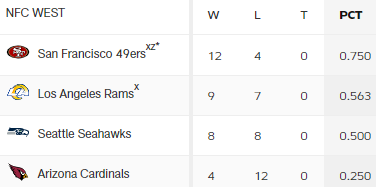 Es wird immer mal wieder erwähnt, dass SF in der NFC an den Rams scheitern könnte. Dieses Spiel ist für beide Kalifornier ohne Bedeutung. Die Plätze sind bezogen und so spare ich mir die Quote Rams für die Playoffs.