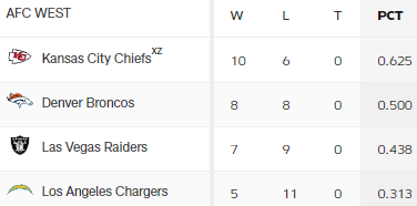 Der AFC West Divisionstitel ist seit der Saison 2016 der 8 in Serie.