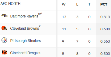 Und das PIT noch minime Chancen in die Playoffs hat, liegt daran, dass die bisherigen 5 Divisionsduelle alle verloren gingen.