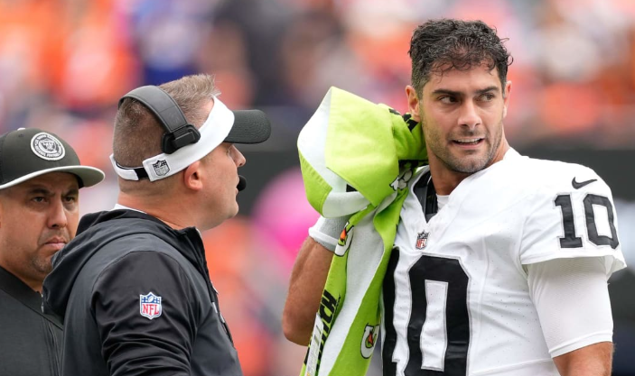 Jimmy G. in seinem ersten Spiel für die Raiders mit 20/26 (77%), 200 Yds, 2 TD und 1 INT. Ende des 3. Quarters nach 7 1/2 Minuten, 52 Yards und nur noch 6 Yds von der Endzone entfernt intercepted Jackson das Ei.