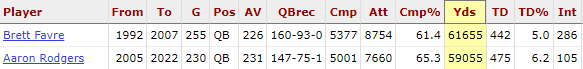 vielleicht doch Rodgers weil er ein Rating von fast 104 hat und Favre nur 86